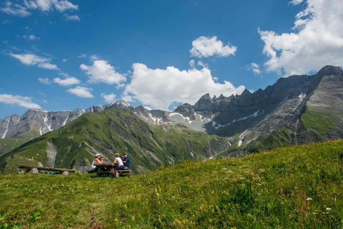 Bis hinauf zum Firstboden wird hier oben noch das Wildheuen praktiziert. Unterwegs begleiten einen Wasserfälle und mehrere Feuerstellen laden zum «Bräteln» und Verweilen ein. Nach einem recht steilen Aufstieg von Elm her wird man auf dem Firstboden auf 1750 m ü. M. mit einem überwältigenden Panorama belohnt. Von hier aus sieht man direkt zum sagenumwobenen Martinsloch und auf die «magische Linie» der Glarner Hauptüberschiebung vom Hausstock über den Piz Sardona bis zum Foostock. Wer nicht mit der Bahn ins Tal zurückfahren möchte, durchwandert auf dem Abstieg die imposante und wilde Tschinglenschlucht.