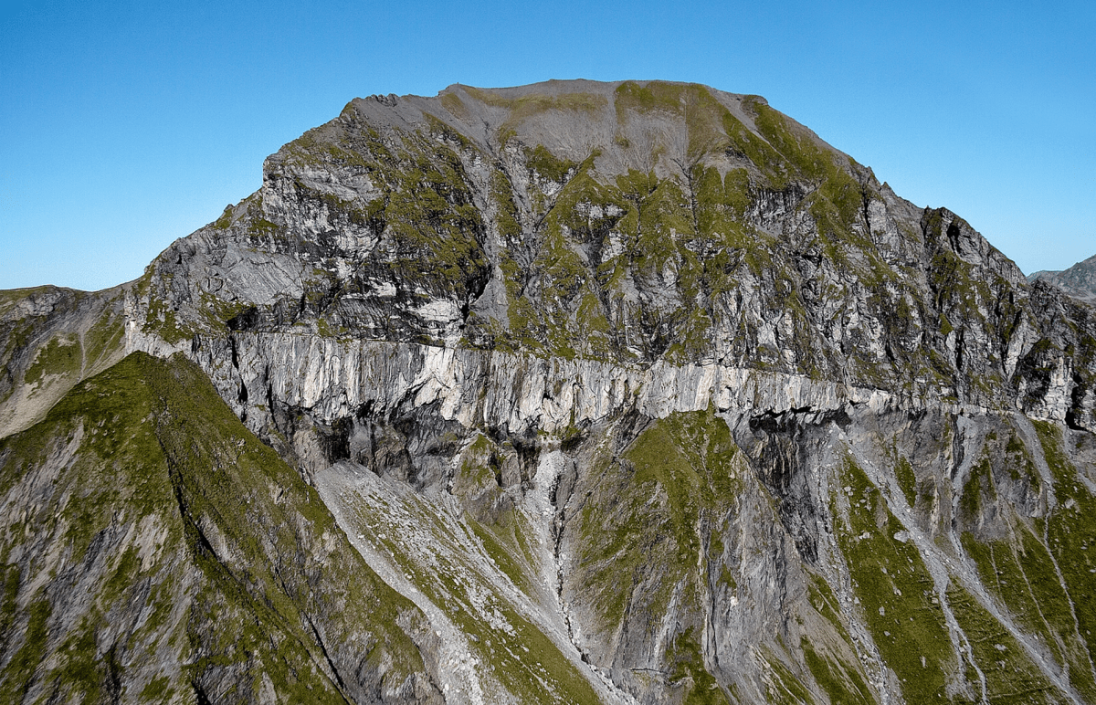 Am Foostock zwischen Elm und dem Weisstannental (2611 m ü.M.) ist die Glarner Hauptüberschiebung deutlich ersichtlich